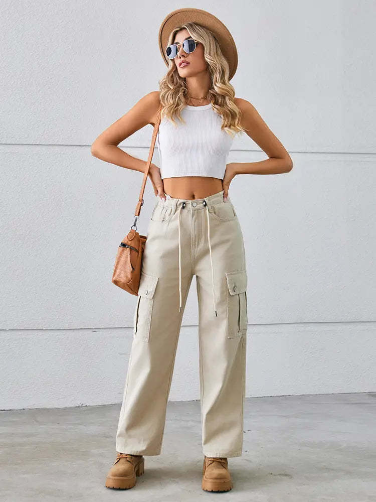 Adjustable Drawstring Denim Pants