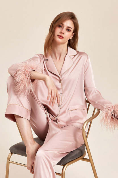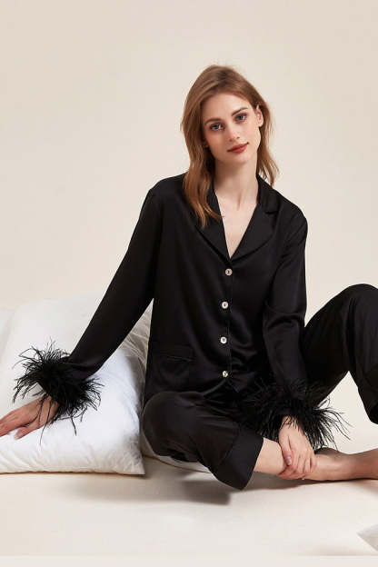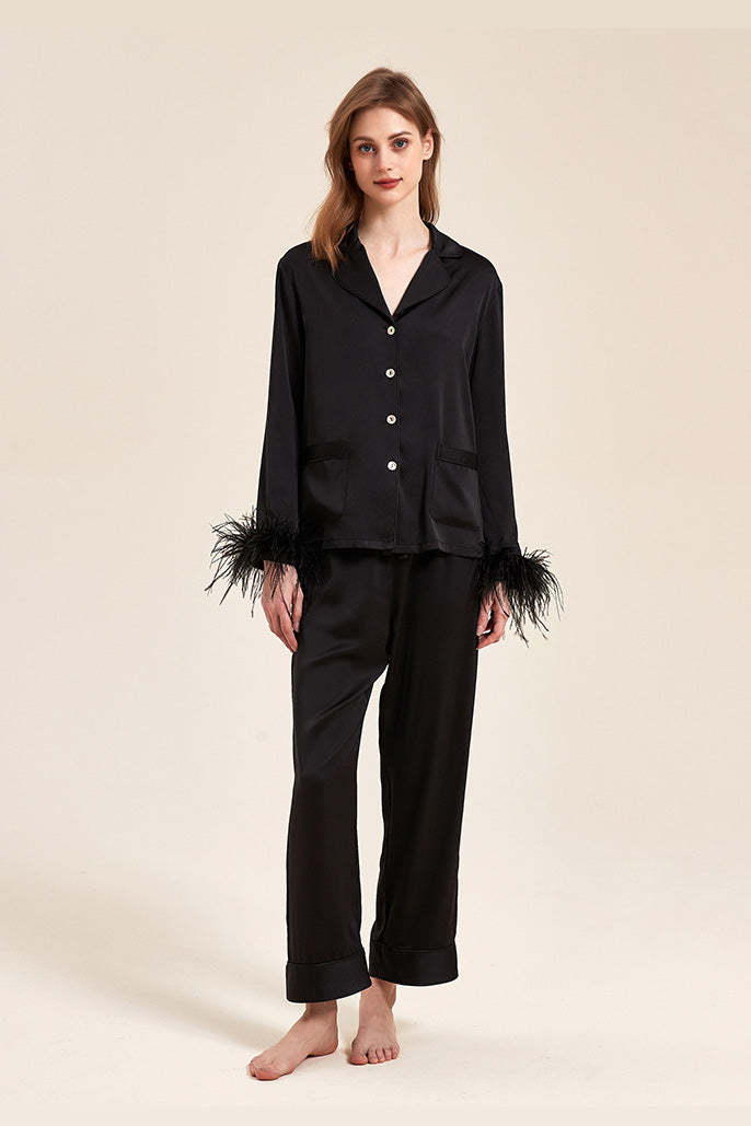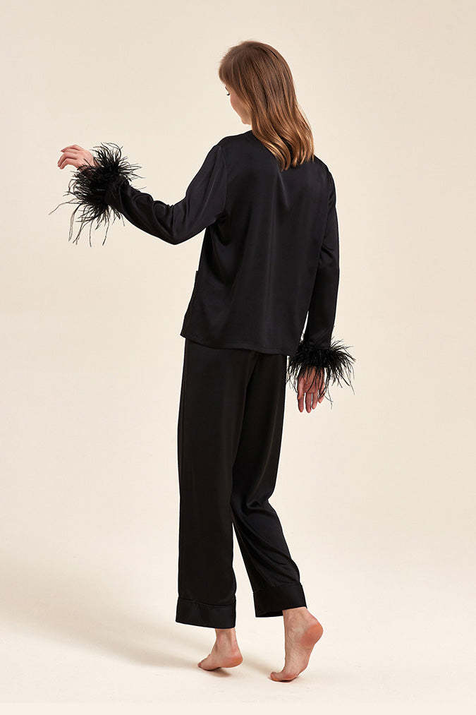Who knew Morning could look this cute?! This set includes cozy tie waist pants, a super soft bejeweled button-down top, and fabulous feather cuffs. Did we mention that the feather cuffs are detachable to make for an easy wash? Slip into our Kris Kringle Pajamas Set after a long day, because you've earned it! Also makes the perfect gift for your girl gang!