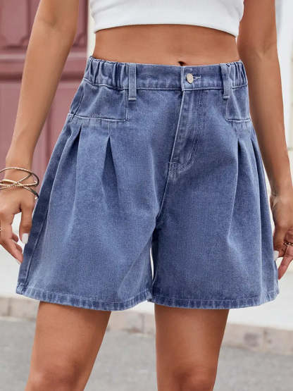 Elastic Waist Relaxed Denim Shorts