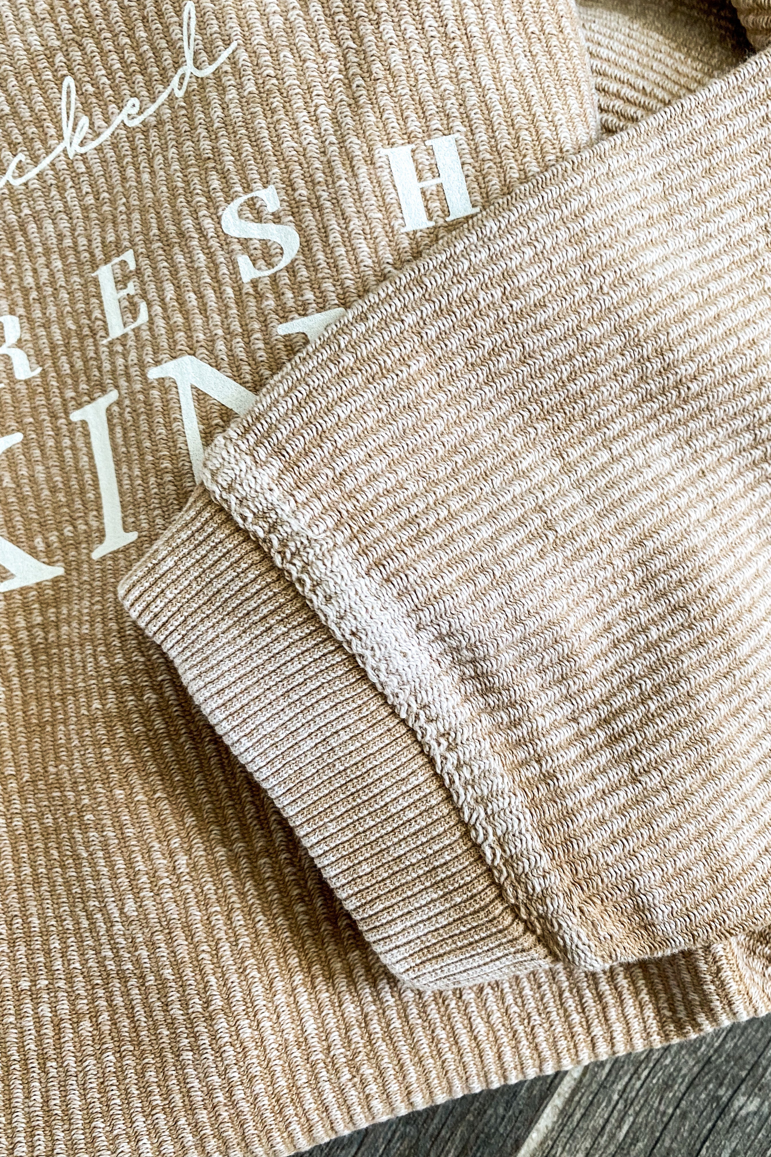 Luxury Corded Crew Sweatshirt is made of corded fabric for a soft, yet structured feel. Its vintage wash delivers rich, warm colors. Oversized fit features a ribbed crew neckline, cuffs, and hemline. Custom dyed and snow washed for softness and vintage look