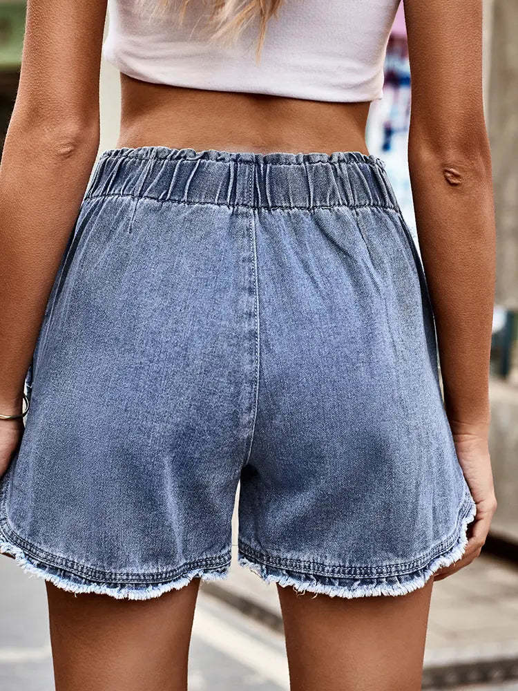 Frayed Bloom Denim Shorts