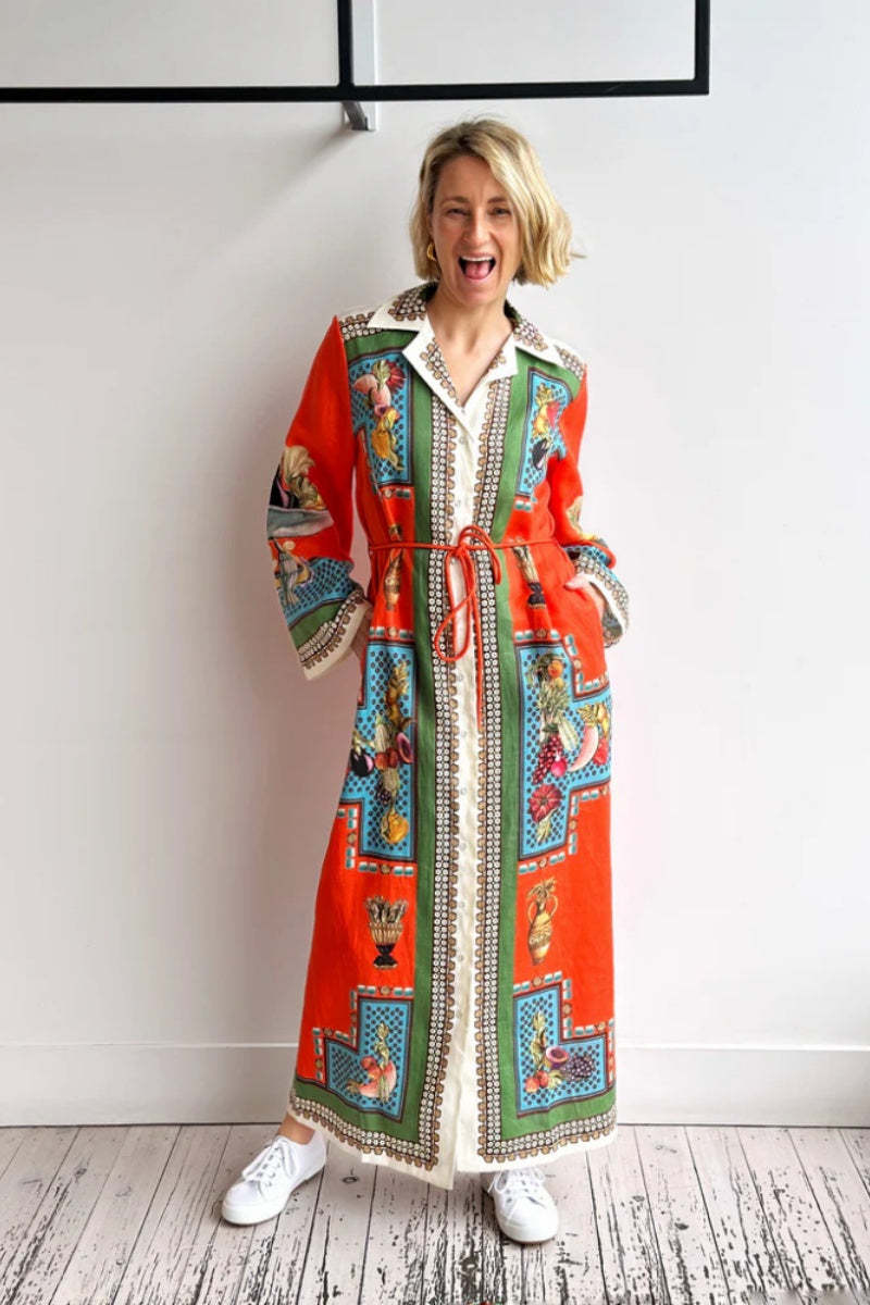 Long-Sleeve Linen Waist Dress