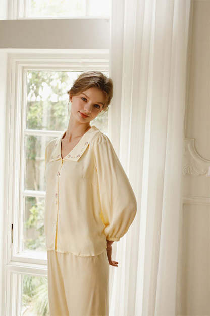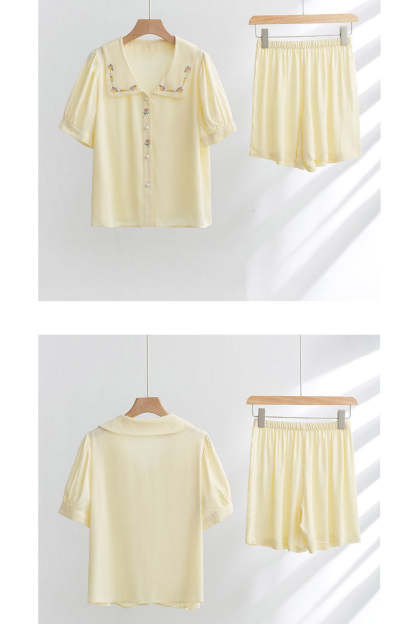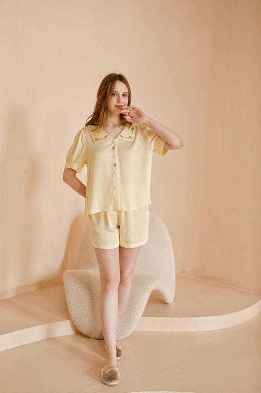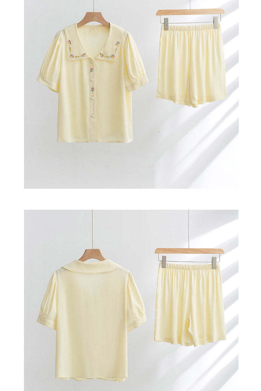 Satin Rose Embroidery Sleepwear Set