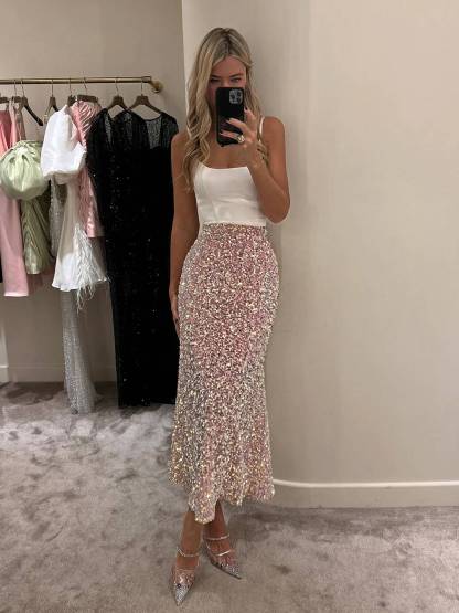 Sequin Decorated Velvet Skirt In Light Pink