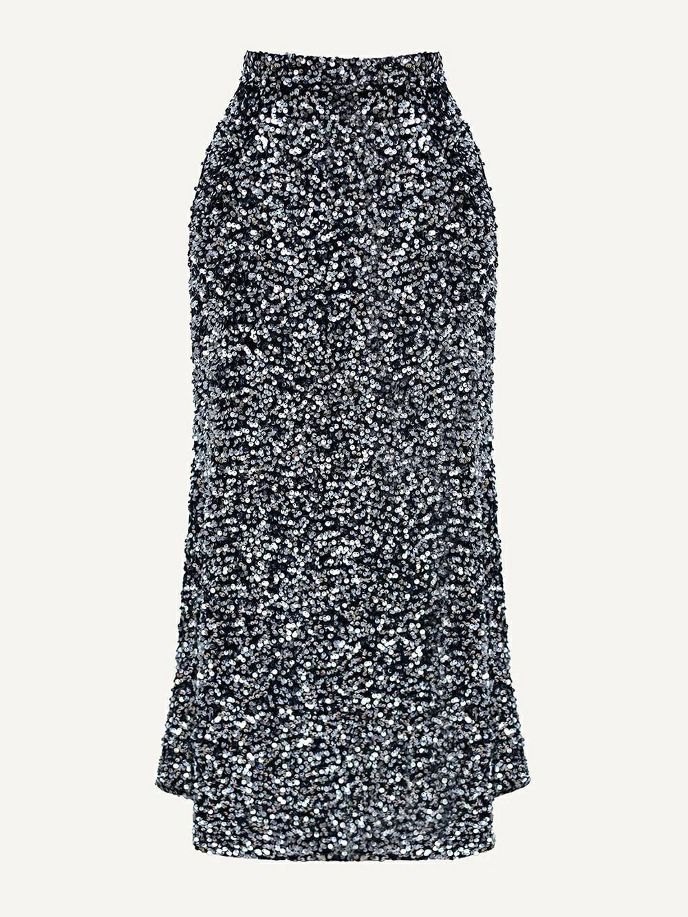 Sequin Decorated Velvet Skirt In Silver