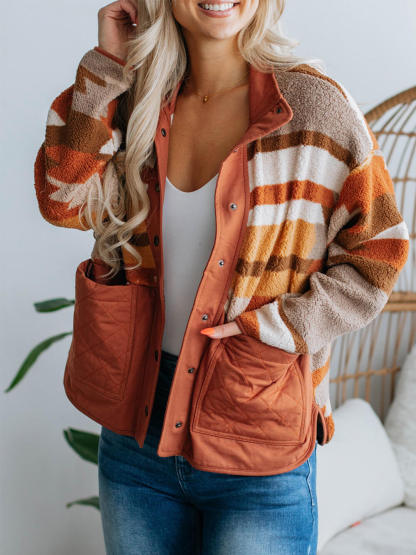 Striped Contrast Fur Coat