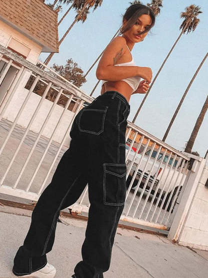 Versatile Elastic Denim Work Pants